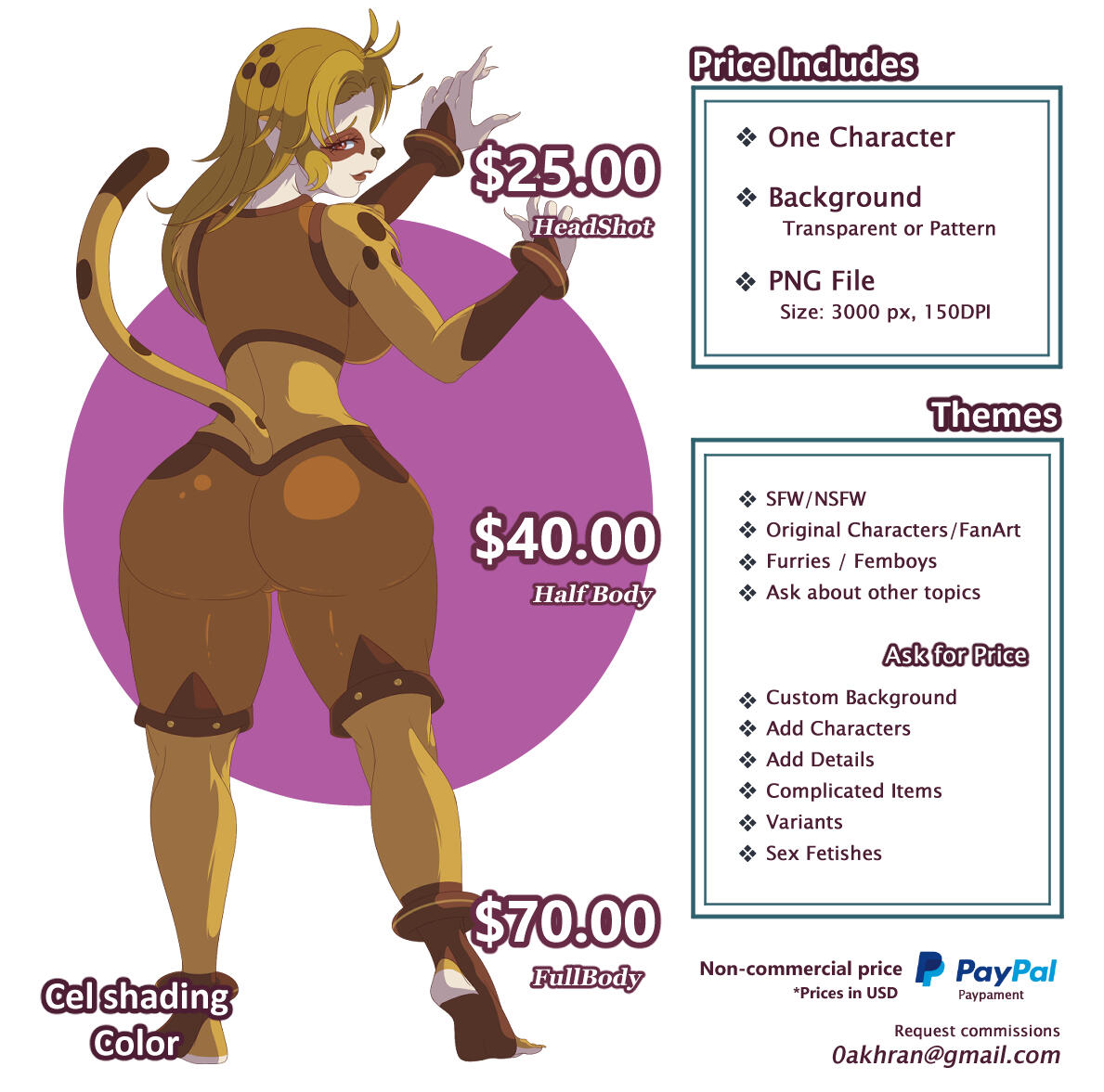 Before starting work, I'll need you to send to [email protected] the reference images you have to prepare the commission: